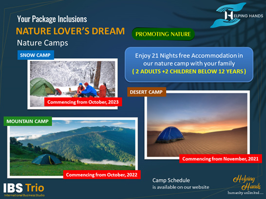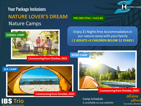 | Basic Inclusions: | 20 Nights stay in our Nature Camps |